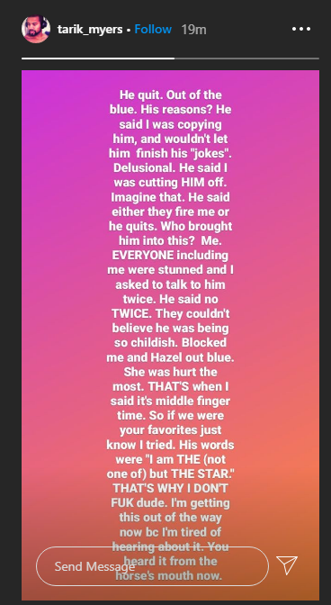 Tarik mentioned that he tried to talk to him twice but Dean refused to budge. Hazel was also really hurt about this. However, Dean blocked them both out of the blue. Tarik conveyed to his fans that in case they were their favorites, he didn’t give up without trying.