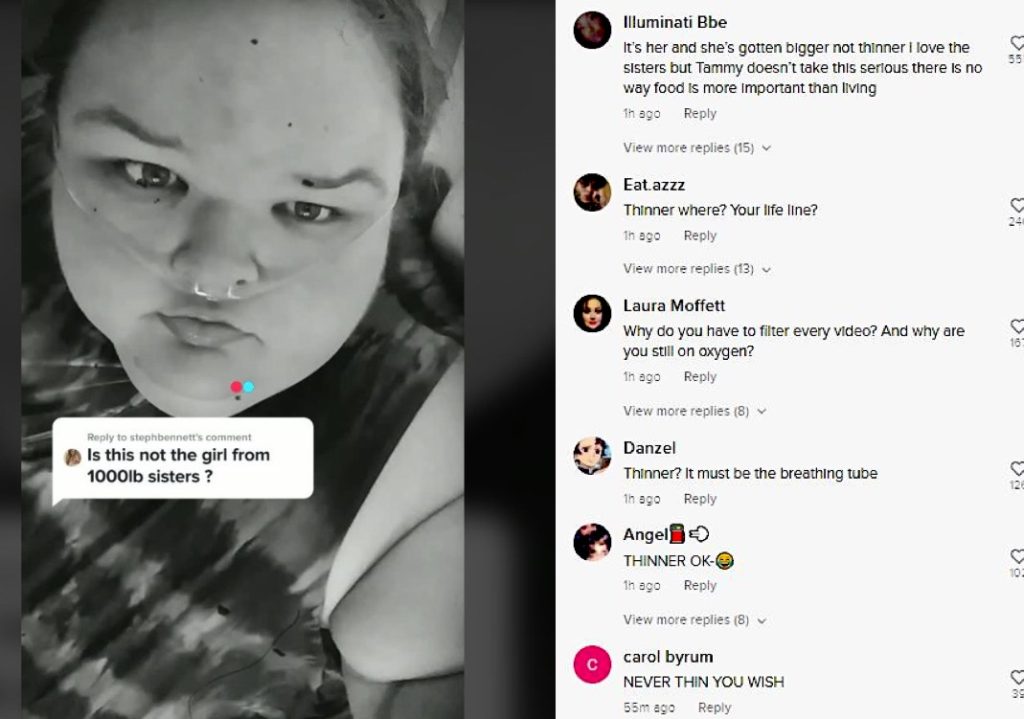 However, Tammy continued to have a rude attitude towards her fans, who were concerned about her. On the other hand, she became very active on her social media and was uploading many selfies. Her followers were pretty happy to see the TLC celeb finally working hard on herself. When they asked her if she’s losing weight, Slaton said that she’s not allowed to reveal anything due to the TLC contract. Yet, she has now confirmed that she has actually lost weight. In a recent Tiktok video, someone asked her if she’s the girl from 1000 Lb Sisters. To this, Tammy replied that she is that girl but only “thinner.”