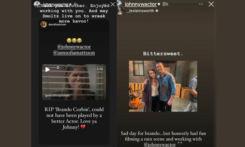 While there is no final word on whether or not the talented actor’s journey has come to a definite end on General Hospital. Some of the stories Johnny re-shared on his official Instagram account point that way. “Bittersweet” “Sad day for Brando.” Lexi Ainsworth wrote, “but honestly had fun filming the rain scene and working with Johnny”. Actor David Lautman also bid his farewell to Brandon. “RIP Brando Corbin, couldn’t have been played by a better actor. Love ya Johnny” he concluded with a broken heart emoji.