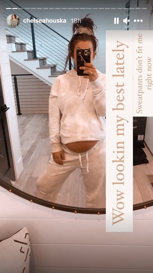 Chelsea is all set to welcome her baby girl. This would be her third with Cole and her fourth child after Aubree, Watson, and Layne. She has shared several snaps of her growing baby bump on her social media. However, the latest one suggests that she’s almost there to deliver the baby. Popculture was the first one to capture the fleeting Instagram story that says that Houska doesn’t fit her sweatpants anymore. This clearly means that the baby girl is well on her way to step out of her moma’s womb.