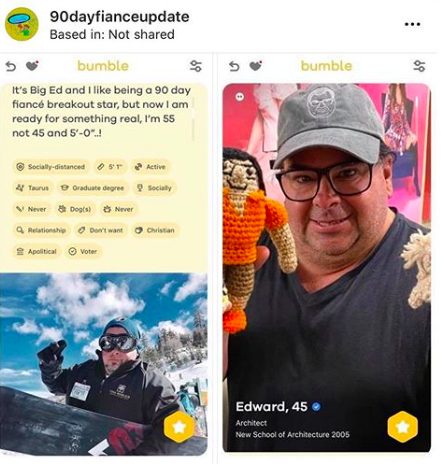If we were to pick out a tactic from the pile of attention-seeking activities Big Ed has been engaged in, it would be a tough task. But just for the sake of it, let’s take a look at his latest gimmick. It turns out that not only Ed is ready to get back out there, but he’s also patronizing a popular dating platform using his 90 Day Fiance: Before The 90 Days fame. Big Ed is on Bumble and fans can’t stop talking about it.