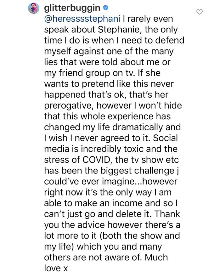 Another fan accused her of being mean towards Stephanie. But when the fan suggested she could talk about her a bit nicer, Erika said that she really talks about her. The only time she does is when she has to defend herself or peer group against the lies. Once again, she expressed her regret about their time together even though it changed her life dramatically.