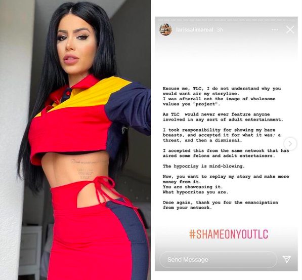 Highlighting the hypocrisy of the network, Larissa said that she accepted such a thing from a network that has shared some adult entertainers and even felons. She sarcastically thanked the network for the emancipation. In her Instagram story, Larissa also accused the network of trying to make money off her.