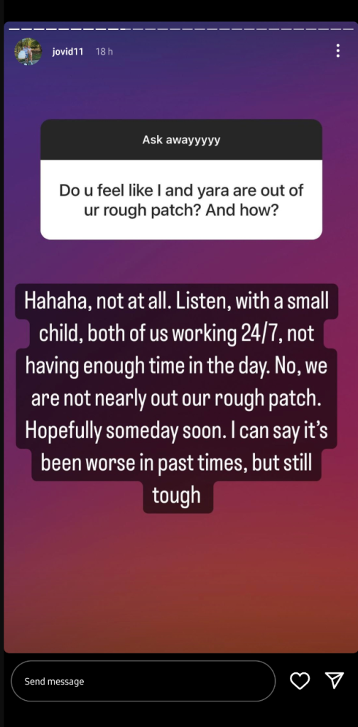 Well, Jovi was quick to take notice of this question. Hence, he replied to it in a raw manner. Well, he explained that both husband and wife working 24/7 and raising a kid is no easy task. Hence, Yara and Jovi are not “out” of their rough patch. However, the celebrity expressed hope that they would get out of it someday. Apparently, he stated that things had been “worse” in the past. Hence, they are not that bad now, but still tough. Keep track of all the 90 Day Fiance scoop only through TV Season & Spoilers.