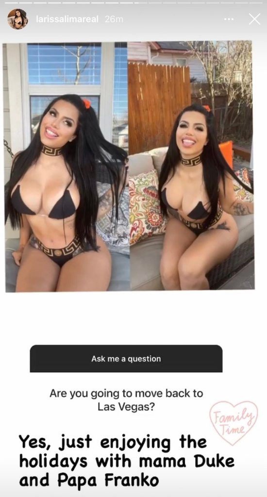 Larissa was thrilled to settle in the US. However, her separation from Colt shattered her dream. But then, she met Nichols and together, they packed off to Colorado Springs. It seems that the place didn’t welcome her well because Lima has decided to go back to Vegas. Although she teased doing this in the past, she recently made an Instagram post to announce her decision officially.