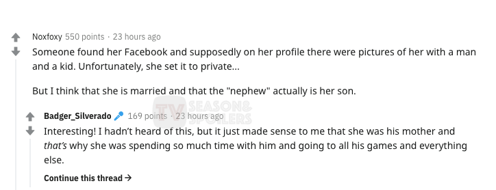 Many users have had the same thought. In fact, one stated that he saw on her Facebook profile that stated Lana is married and has a son. However, he also added that the profile is questionable and that it’s now set to private.