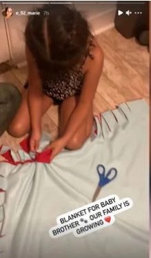 Recently, Liz went on her Instagram and shared a picture of her 7-year-old daughter Ryleigh making a blanket. Many fans were astonished and thought that there is a new member on the way in the family. She also said in the picture, “ Blanket for baby brother, our family is growing.”
