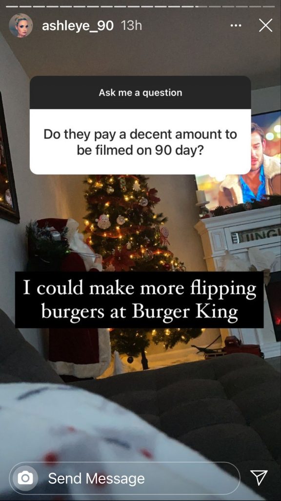 It seems like Ashley is pretty pissed at the network. Throwing a lot of shade at TLC, she didn’t hold back while answering a question posed by a curious fan on Instagram. The follower asked whether they pay the contestants a decent amount for filming 90 Day Fiance. Ashley replied by saying that she could have made a lot more money if she flipped burgers at Burger King.