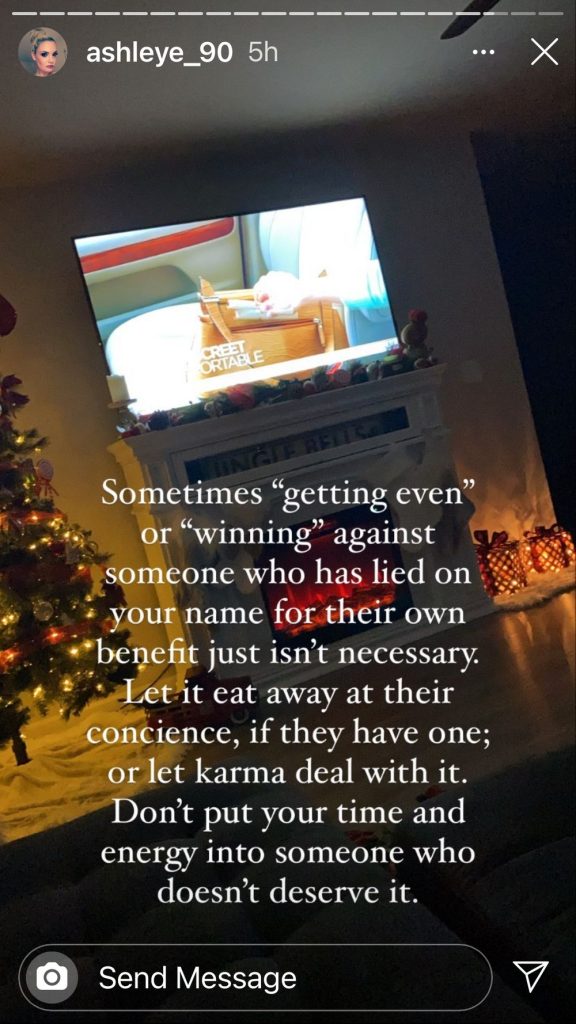 She then posted a cryptic message about how Karma will take care of what Jay did to her. Ashley stated that winning or getting even with the person who took advantage of you might not be necessary. If they have a conscience, it will eat them away. If not, Karma will deal with them. The reality TV star implied that no one should ever put their energy and time into a person who isn’t deserving.