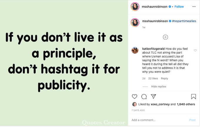 The Black Lives Matter movement has caused Shaun to be super active on social media for the cause. She recently posted a video of George Floyd’s little daughter that echoed ‘Daddy changed the world.’