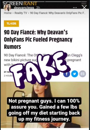 Posting a screenshot of an article highlighting the speculations about Deavn being pregnant, the tattooed beauty revealed that the news is 100% fake. She added that she had been off her diet for a while which is the reason behind her weight gain. Deavan let fans know that she is going to be on board with her fitness journey once again shortly.