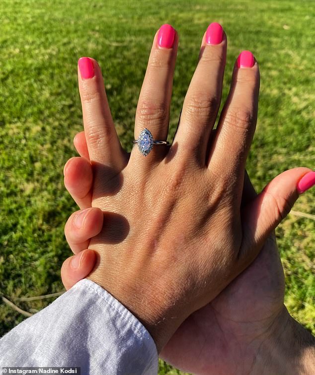 Nadine posted a picture of getting cozy with the love of her life. The beautiful ring on her finger was clearly visible as she announced the happy news on social media. She also revealed that just like that he changed her life forever. Flaunting her beautiful brunette locks and a pink flirty dress, she wrapped her arms around the mystery man. Another picture shows the couple locking lips as Nadine’s Instagram stories give fans a closeup of her beautiful ring.