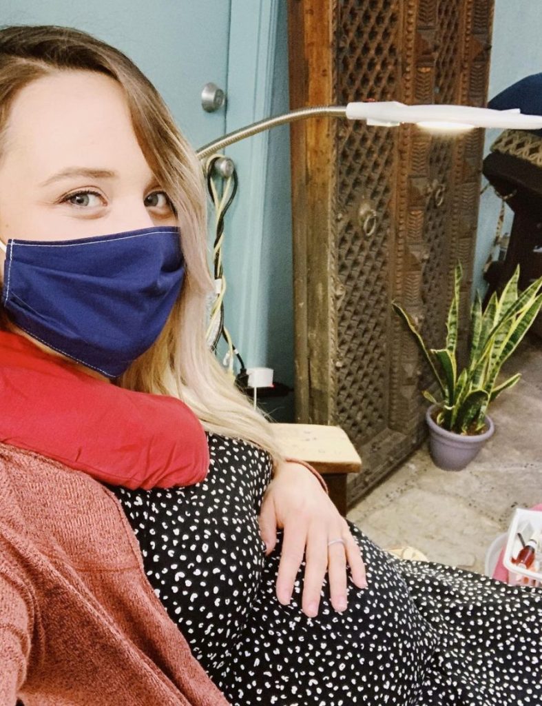 We know that Jinger and Jeremy’s second child is due to arrive in November. However, we are not certain about the exact date. And while the date is coming closer, the expectant mother is relishing her time. She shared a picture from a nail salon on November 14. Jinger shared that her friend took her out for having some girl time and a pedicure. While she was out, Jinger didn’t forget to put on her mask.