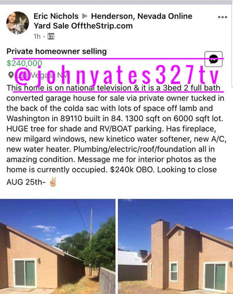 The first line on Eric’s ad was that the house has been on National TV. It’s a three-bedroom two bathrooms garage house. Eric also stated that teh place is spacious and that it’s 1300 sq ft was built on 6000 sq ft loft. It has a fireplace, water softener, Air conditioner, an RV or a boat parking, and a water heater, to name a few. Currently, the house is occupied. So, if the potential buyers want pictures of the interior, they need to direct message him. He demands $240k for the property. As for the date, he is looking forward to closing the deal before is 25th August.