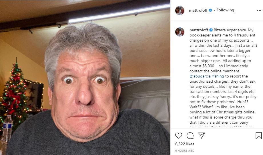 Matt went on to share that he contacted the online merchant Abu Garcia Fishing to resolve the matter. However, to his surprise, they said that it’s not their responsibility to fix such issues. He continued by saying that he purchased a lot of Christmas gifts but the company stepped back to share any details of them. He even called out the company for having no shame and simply pressing inconvenient charges on him. The reality star concluded his post with a few hashtags – #countyourpenniestoo #thencountyourblessings #fightfraudwhencaughtintime #not.