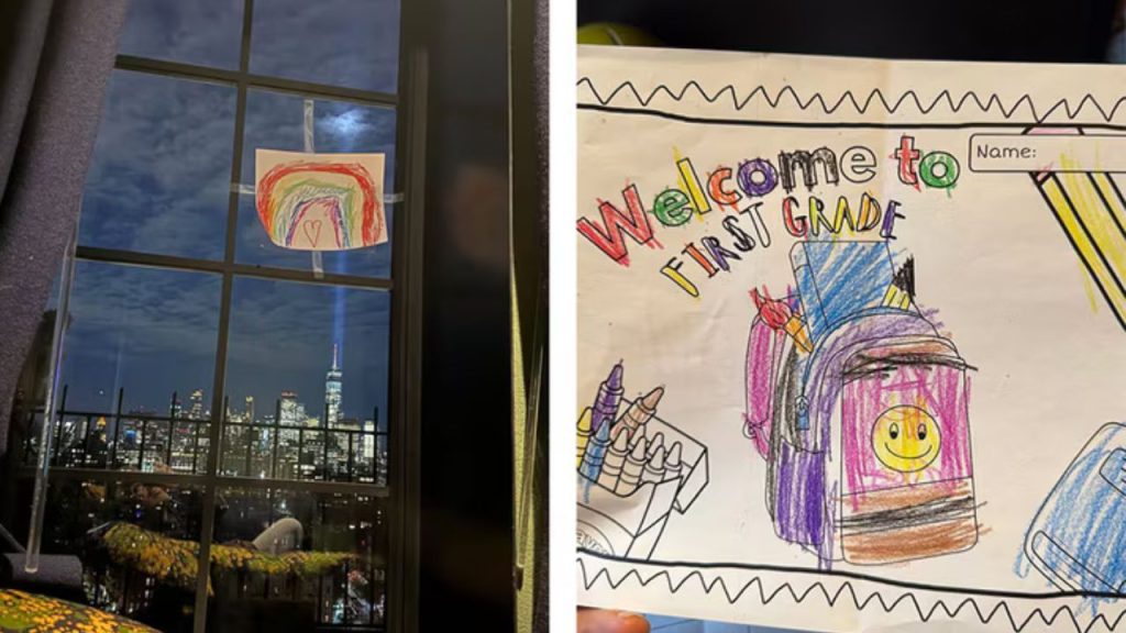 Real Housewives host Andy Cohen is settling into his stunning new NYC apartment, and thanks to his son, Benjamin, it now has a treasured little masterpiece. The proud father shared two sweet pieces of artwork by his 6-year-old, including a rainbow over a red heart. A colorful “Welcome to first grade” sheet is displayed against the backdrop of a sweeping city view.