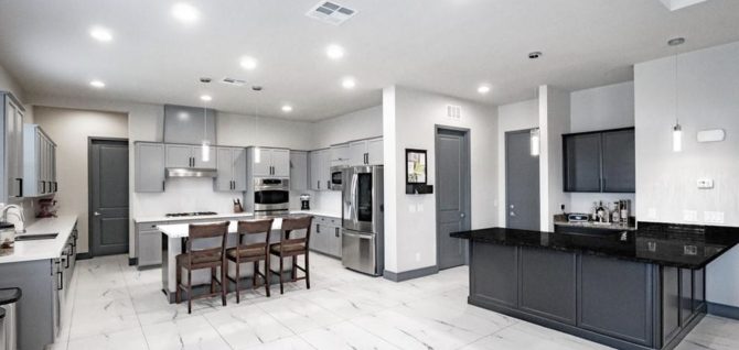 Sister Wives fame Meri and Kody’s former house is now dressed in different attire. The first floor got the touch of white and gray tile. Moreover, the kitchen area flaunts shades of grey cabinets with a bar seating island. The walk-in pantry has quartz countertops and stainless steel appliances. Moreover, Meri’s favorite section, the wet bar, is now changed to black quartz countertop with gray cabinets.