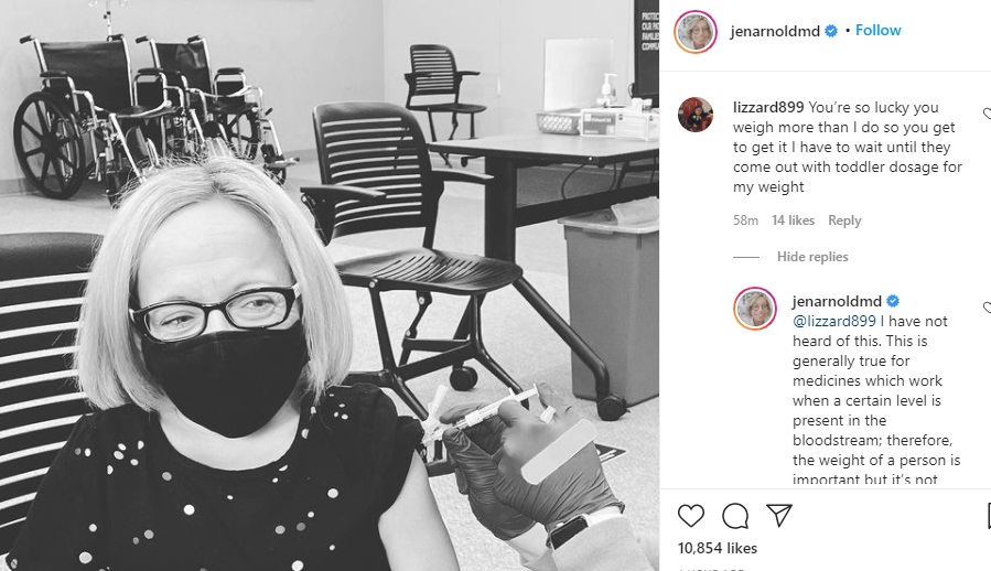 On the same post, a fan caught attention for their comment. They wrote that Jen is lucky to weigh more than them. This is perhaps the reason she got the first dose of the vaccine. However, they added that they’d have to wait until the doctors came up with ‘toddler’ dosage. Jen took a note of this comment and responded by saying that she never heard of this. She further explained that this point must be valid ‘for medicines which work when a certain level is present in the bloodstream.’ And hence, a certain weight is required. However, she continued, this might not be the case for vaccines where the response is related to your immune cells. She further assured them that she’d talk to a doctor to confirm the point.