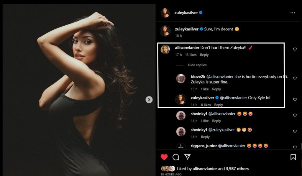 Almost instantly, her Instagram comments section became a hub of adoration and praise from fans showering her with compliments. But amidst the sea of comments, one stood out like a glimmering gem. Allison Lanier, who plays the role of Summer Newman on The Young and the Restless, chimed in with a playful remark, saying, “Don’t hurt them Zuleyka!!” What happened next sent shockwaves through the soap opera community. Zuleyka responded to Allison’s comment with a reply that has since set tongues wagging, “Only Kyle lol.”